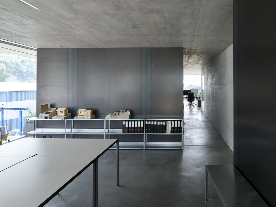 the building is surrounded on three sides by walkways that shade the outer walls in summer. these walkways are lined with container-grown plants which create a screen between the work spaces and the surrounding yards. to the east, these walkways are wider, becoming balconies that can be accessed.
